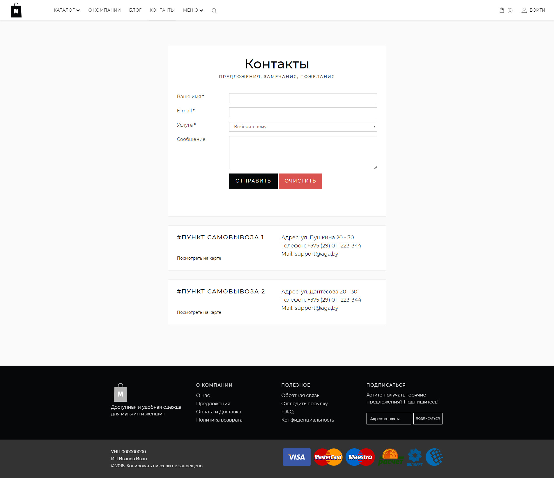 Мы наполним сайт Вашими данными, такие как: телефоны, email, логотип, название сайта, форма обратной связи и фирменные цвета сайта.