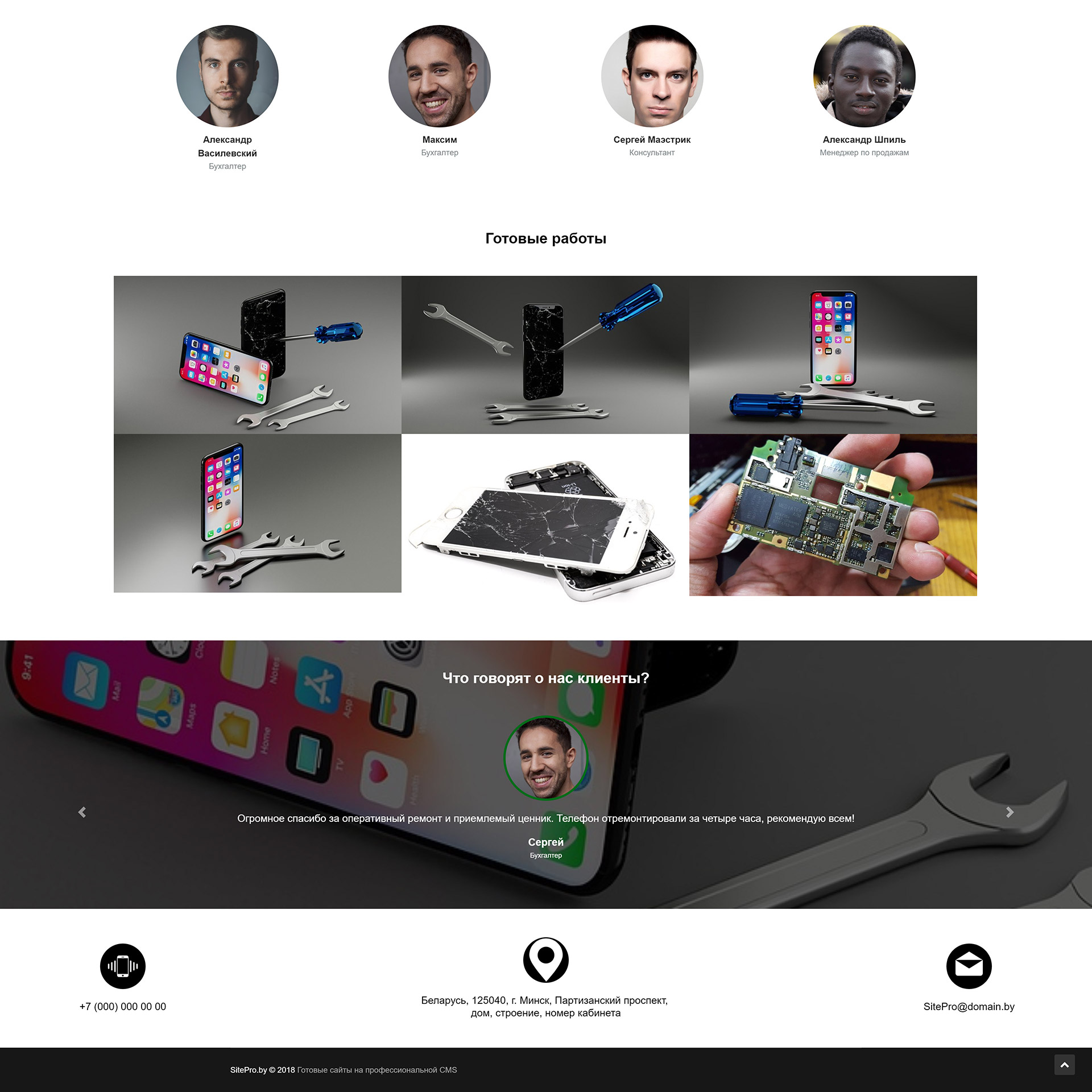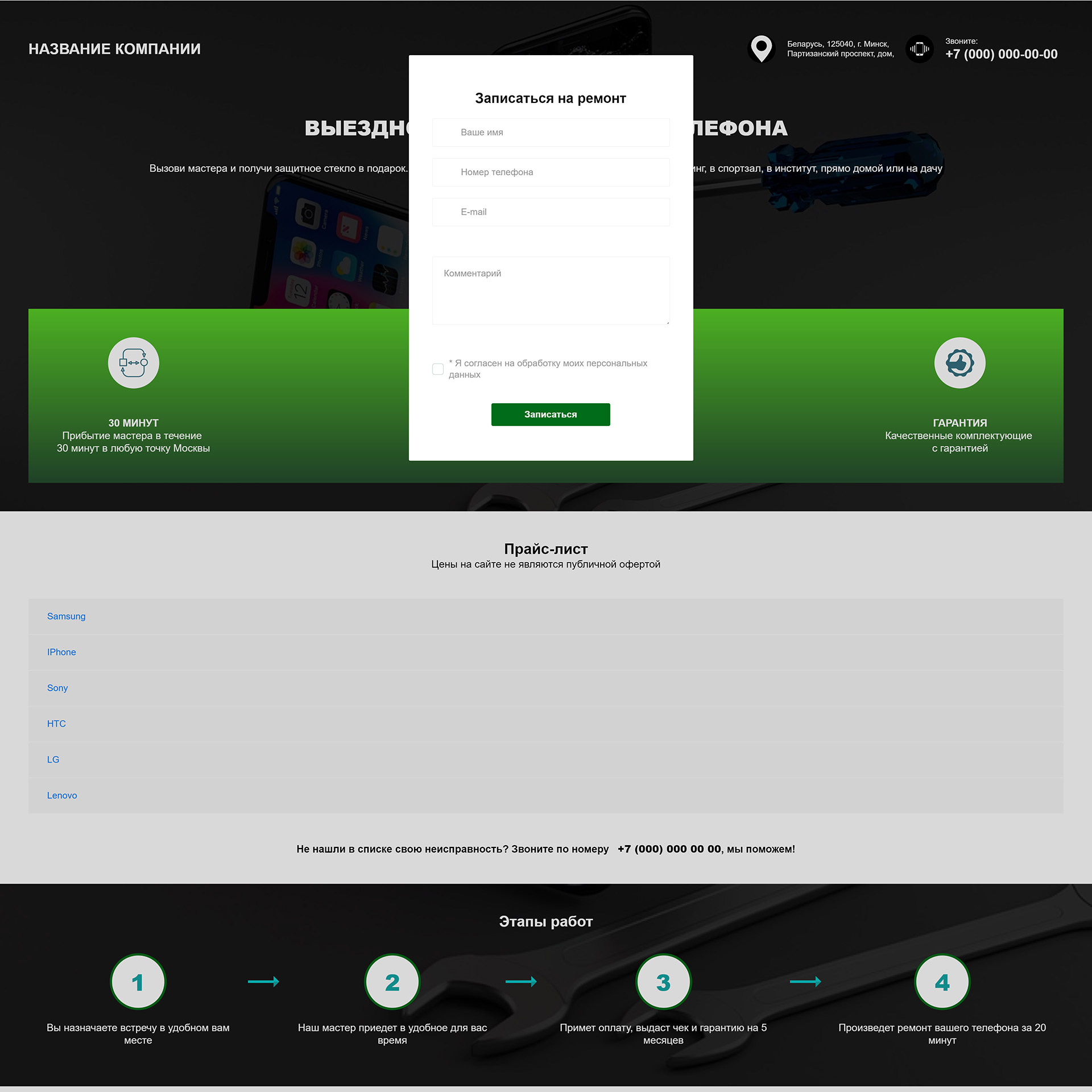 Мы наполним сайт Вашими данными, такие как: телефоны, email, логотип, название сайта, форма обратной связи и фирменные цвета сайта.