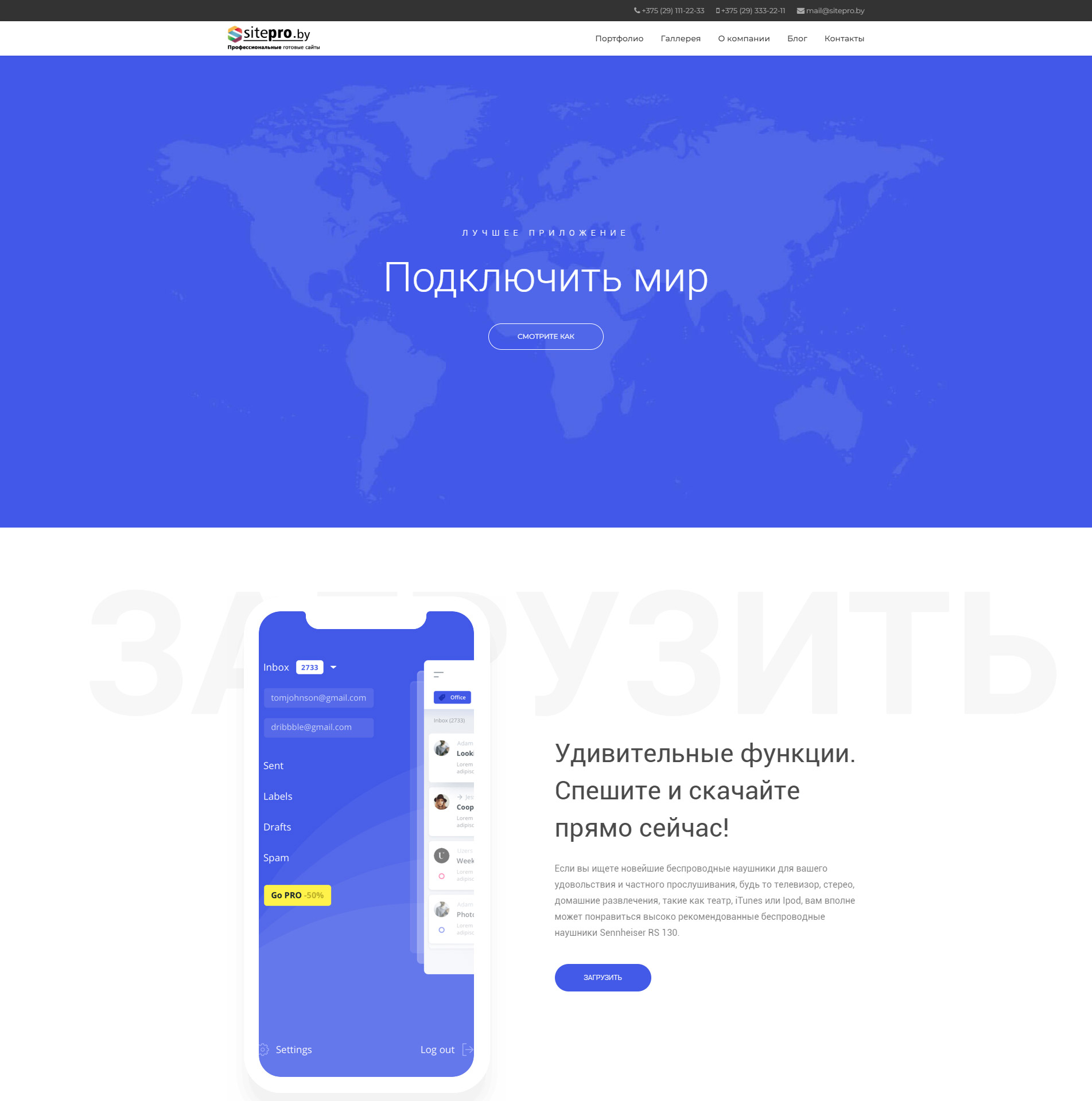 Мы наполним сайт Вашими данными, такие как: телефоны, email, логотип, название сайта, форма обратной связи и фирменные цвета сайта.