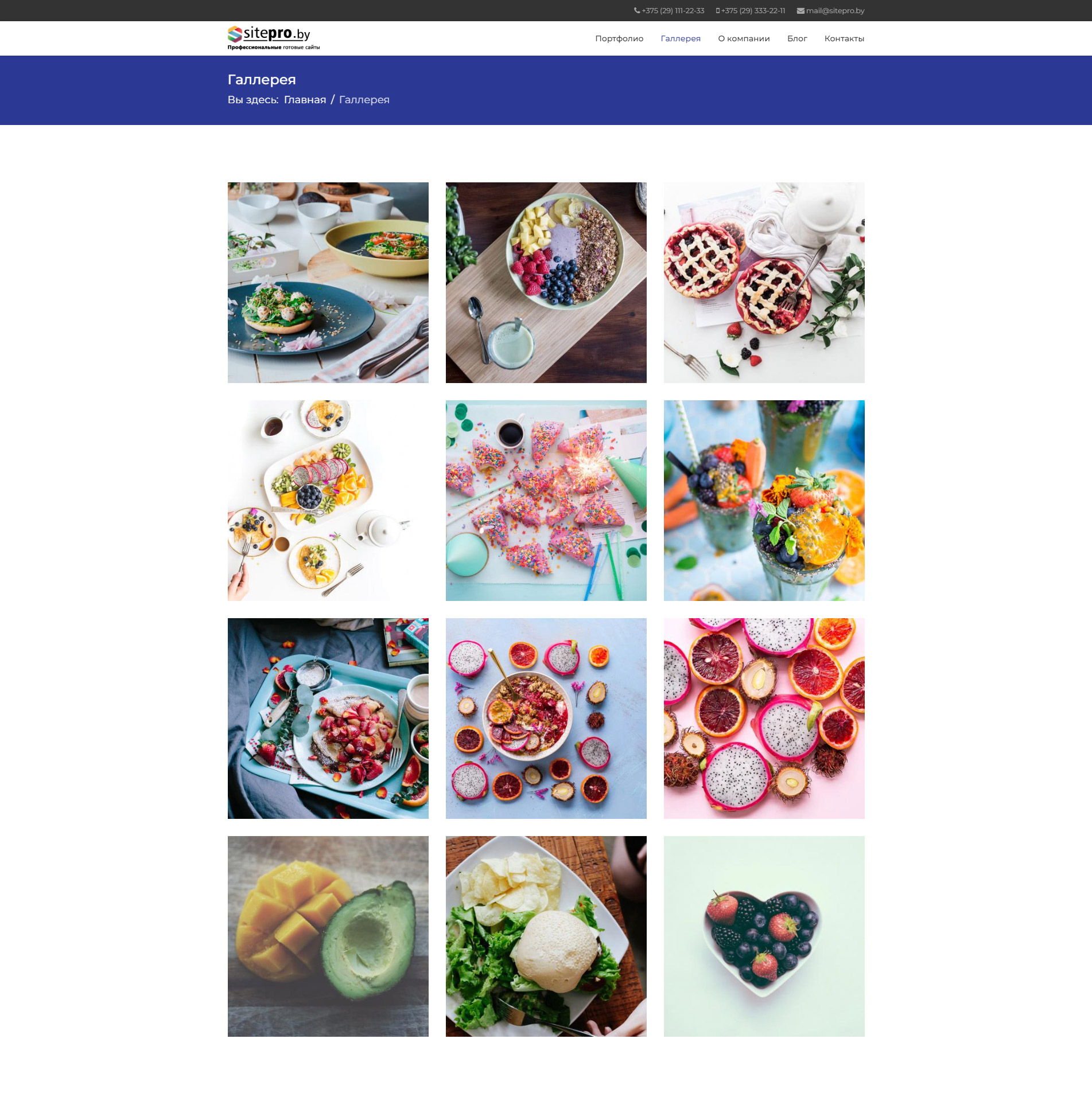Выбранный шаблон нужного типа сайта