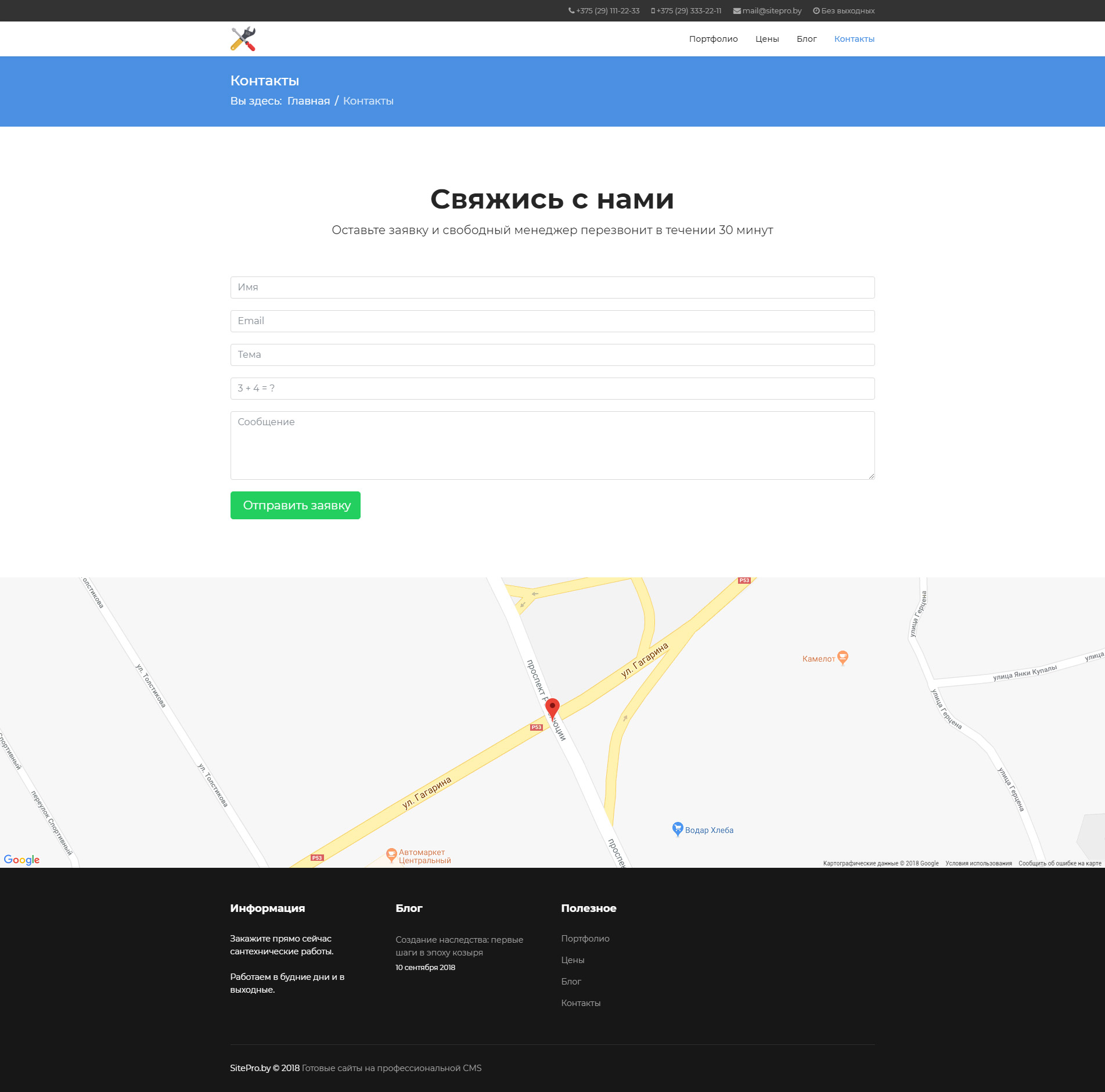 Мы наполним сайт Вашими данными, такие как: телефоны, email, логотип, название сайта, форма обратной связи и фирменные цвета сайта.